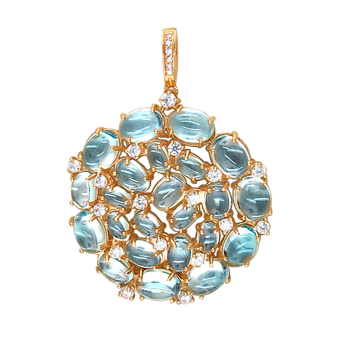 Гемоописание: ТОПАЗ КАБАШОН ОВАЛ 0/0 23шт.,15.09ct # ФИАНИТ КРУГ 0/0 22шт.,1.06ct